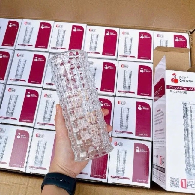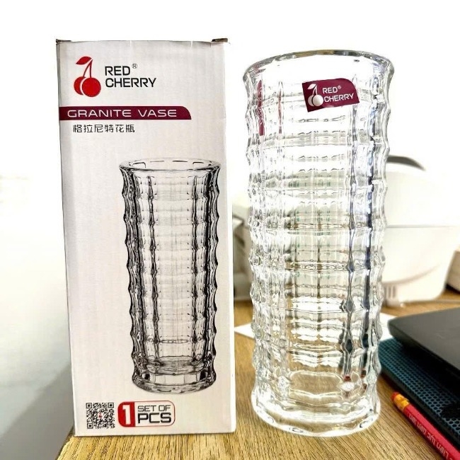 Bình/lọ hoa thuỷ tinh dáng trụ vân nổi