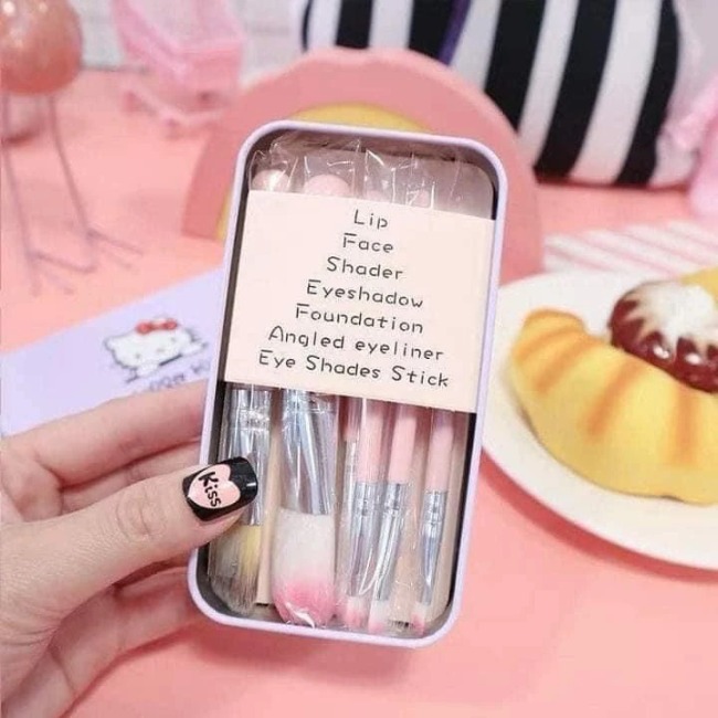Bộ cọ gồm 7 cây có đầy đủ các loại cọ thích hợp cho từng công đoạn trang điểm khác nhau cọ phấn phủ, vẽ môi, má hồng, vẽ màu mắt, vẽ lông mày...