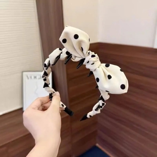 Bờm chấm bi nơ sóng chống trượt phong cách Hàn Quốc