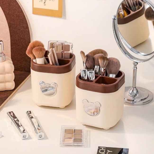 Hộp đựng bút, mỹ phẩm để bàn họa tiết gấu 12.5x10.5x10.5cm