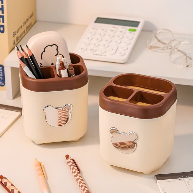 CT5. Hộp đựng bút, mỹ phẩm để bàn họa tiết gấu 12.5x10.5x10.5cm
