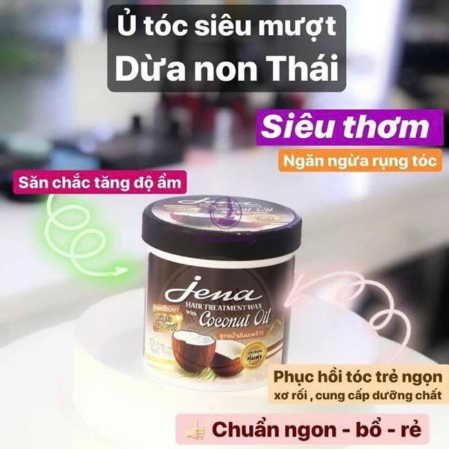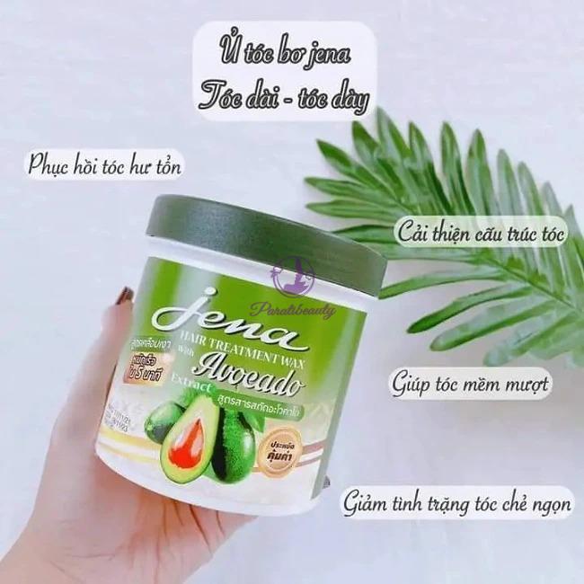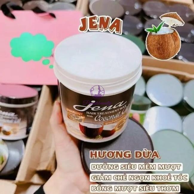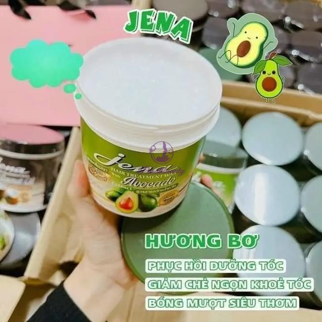 - Kem ủ tóc Bơ và Dừa Jena với thành phần dưỡng chất chiết xuất từ Bơ, dừa non giúp phục hồi tóc nhờ vitamin, khoáng chất, giúp tóc mềm mại, bóng mượt lâu dài. Bên cạnh đó còn có tác dụng cải thiện cấu trúc tóc, giảm hư tổn và phục hồi từ gốc đến ngọn.