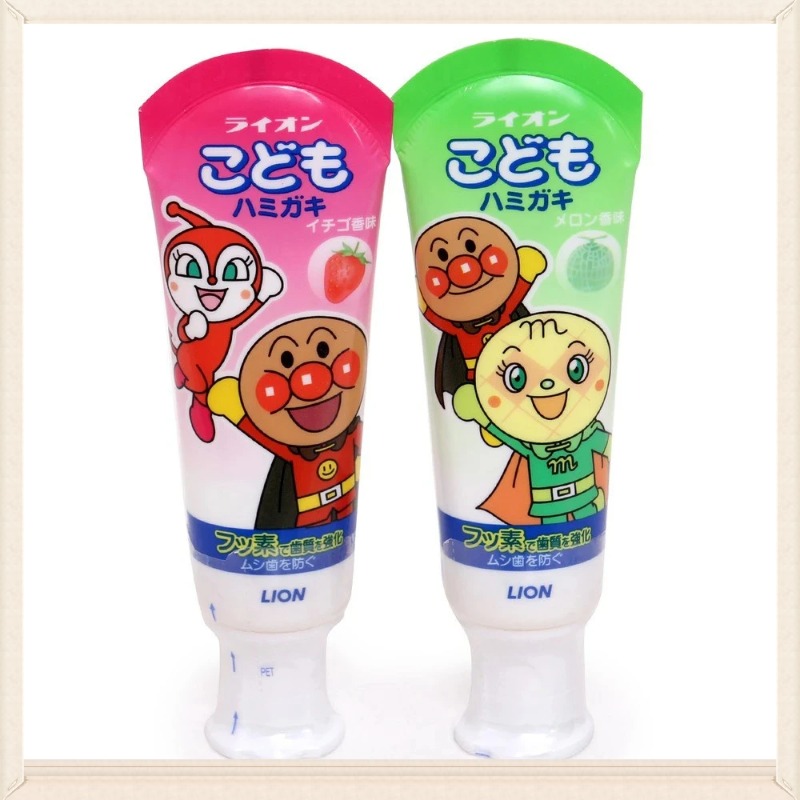 Thông tin sản phẩm được in đầy đủ để bạn nắm rõ về sản phẩm kem đánh răng trẻ em từ 1 tuổi Lion Nhật Bản