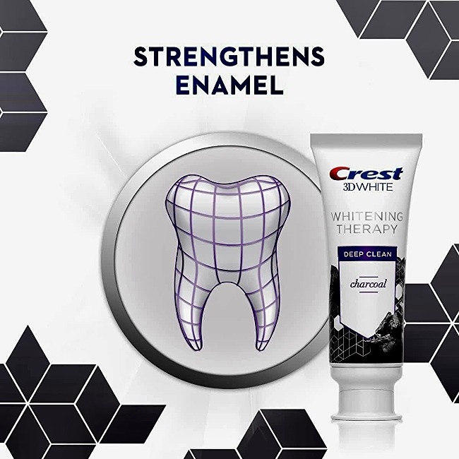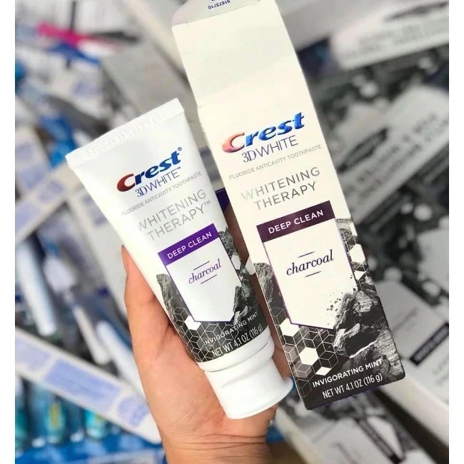 Công thức cải tiến, kem đánh răng Crest với thành phần chứa than hoạt tính, giúp răng trắng, sáng và ngừa sâu răng cực kì hiệu quả.