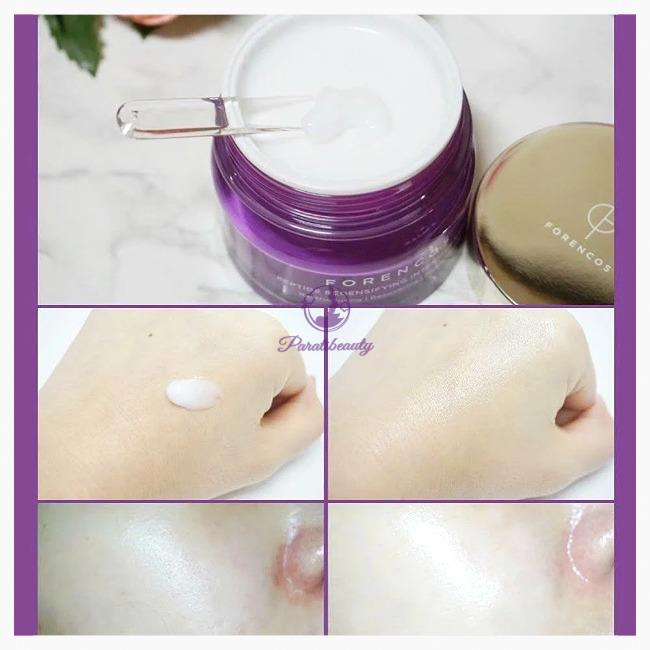 - Lấy kem dưỡng trắng da ban đêm Forencos Peptide Redensifying Intensive Cream cho vào lòng bàn tay thoa đều lên mặt