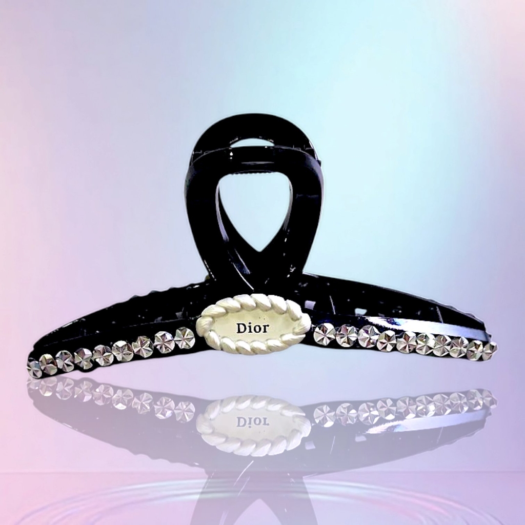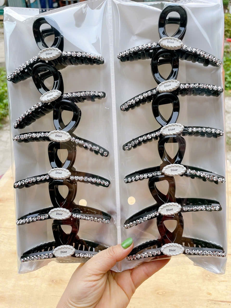 T2. Kẹp tóc chéo đen đính đá