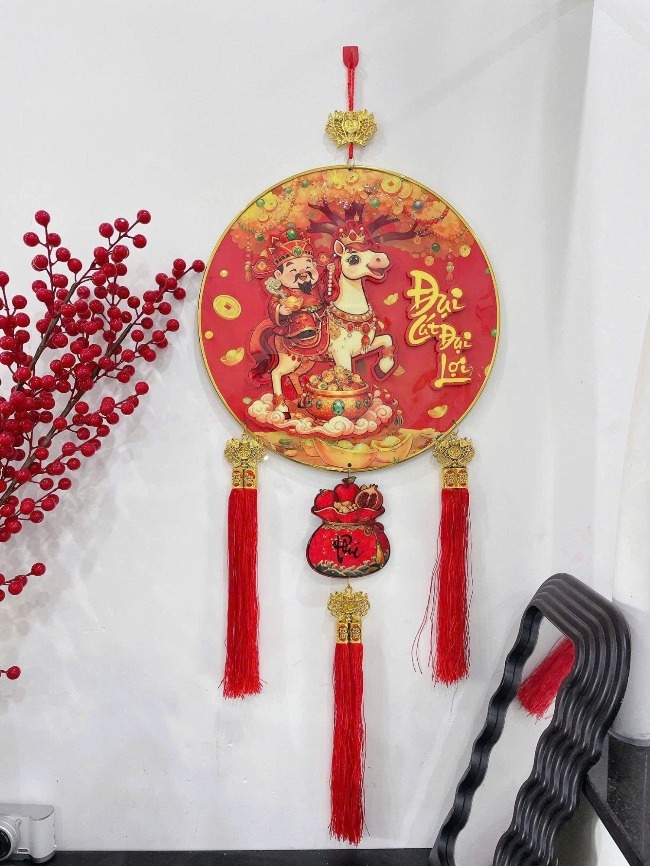 Liễng tròn thần tài ngựa hũ tiền mix câu chúc Đại cát đại lợi