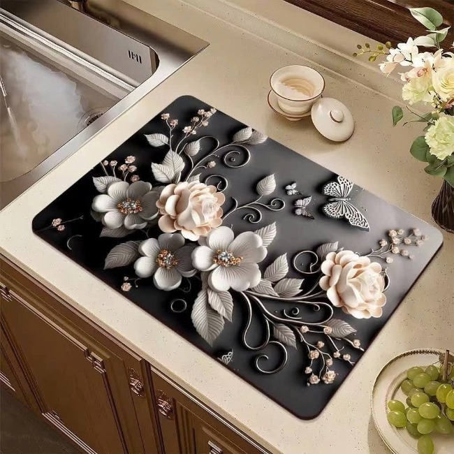 Miếng lót bàn ăn bằng bùn diatom họa tiết hoa 3D 30x40cm M1
