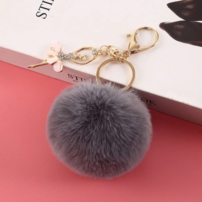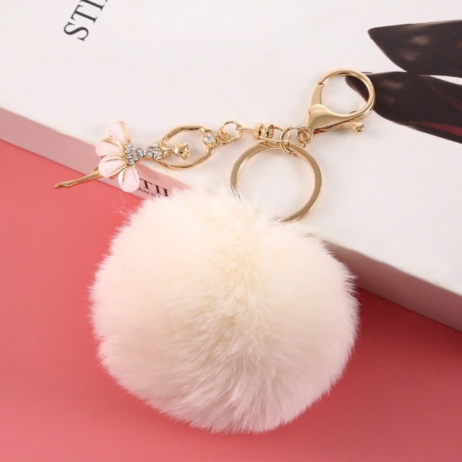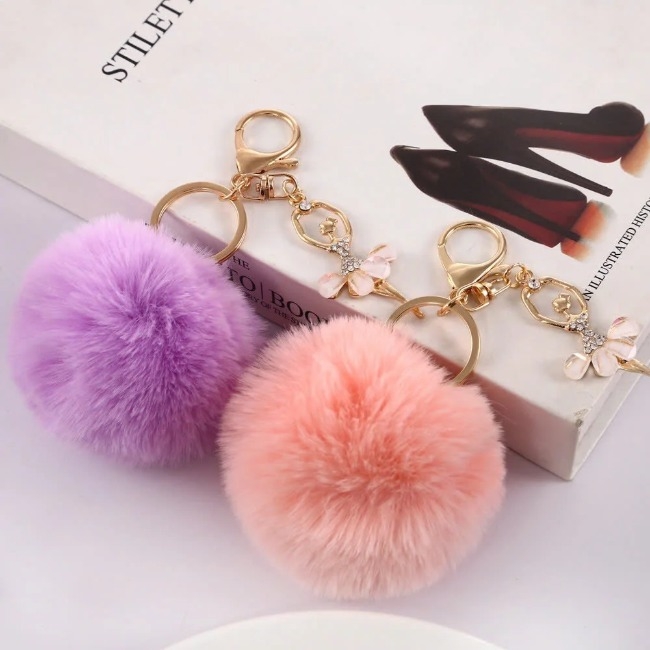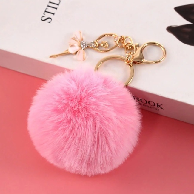 Móc khóa bông tròn kèm móc treo bông hoa đính đá