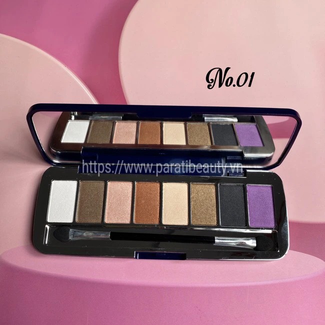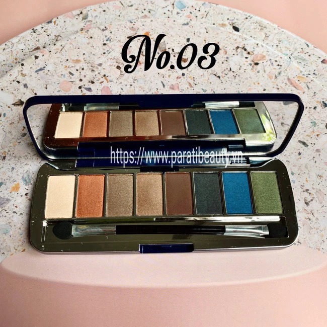 Phấn mắt dạng nén, hạt phấn siêu mịn, bền màu, kết hợp 8 tông màu thời trang khác nhau trong cùng 1 hộp phấn giúp bạn dễ dàng phối màu khi trang điểm mắt.