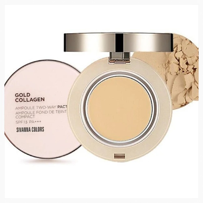 Phấn phủ dạng nén Sivanna Colors Gold Collagen SPF/FPS 15 PA++ vượt trội với các hạt phấn siêu mịn, độ bám và che phủ tốt không làm bí da tạo một lớp màng mỏng nhẹ, siêu mịn. Cung cấp độ ẩm, duy trì làn da mềm mại giúp da kiềm dầu và giảm nhờn trong nhiều giờ nên bạn có thể sử dụng khi đi chơi hoặc đi du lịch.