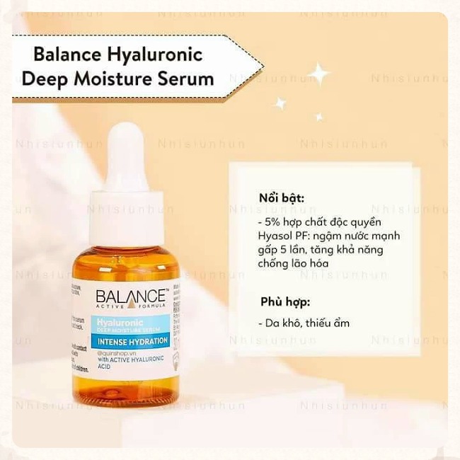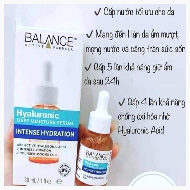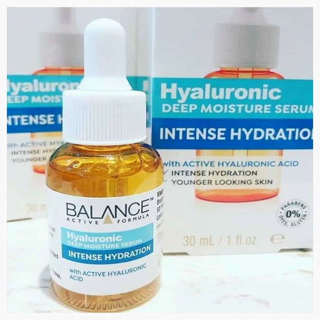 Serum Dưỡng Ẩm, Giảm Lão Hóa Da Balance Active Formula 30ml là sản phẩm serum đến từ thương hiệu mỹ phẩm Balance Active Formula của Anh Quốc, với thành phần chính là Hyaluronic Acid bổ sung thêm Glycerin, Panthenol giúp dưỡng ẩm, phục hồi tình trạng khô da ngay sau khi dùng, cải thiện độ đàn hồi của da giúp da căng bóng và mềm mịn hơn, giảm tiết dầu nhờn, thu nhỏ lỗ chân lông đồng thời hỗ trợ da hấp thụ các dưỡng chất khác nhanh hơn.