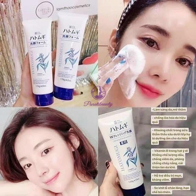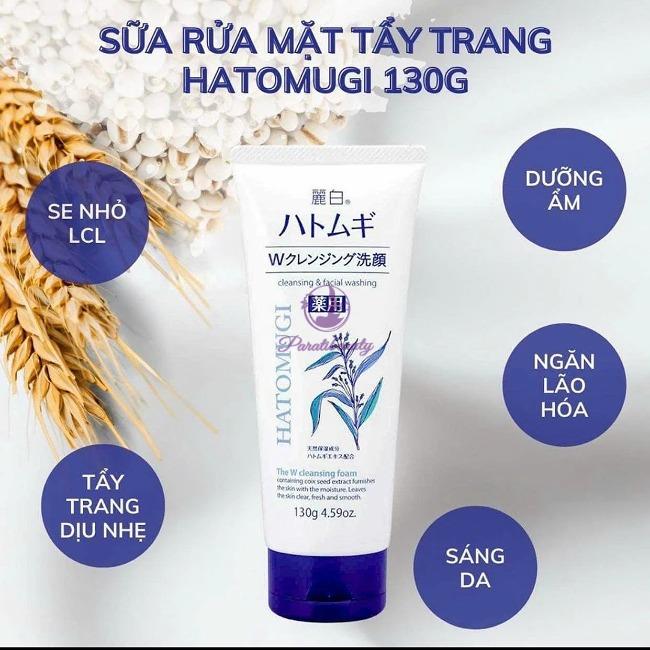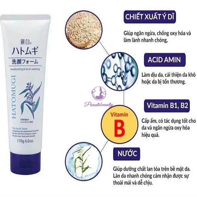 Sữa rửa mặt ý dĩ Hatomugi Naturie với công thức đặc biệt được chiết xuất từ lúa mạch, bột ngọc trai, và quả đào giúp lấy đi nhờn, làm sạch bụi bẩn, hỗ trợ tốt cho da có mụn trứng cá.