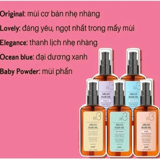 Tinh dầu dưỡng tóc được biết đến như một cách chăm sóc tóc rất hiệu quả vì vậy hiện nay rất nhiều người có xu hướng sử dụng nó như một thứ không thể thiếu cho mái tóc của mình. Trong số các loại tinh dầu hiện nay thì tinh dầu dưỡng tóc Raip R3 Argan Hair Oil đang được rất nhiều người sử dụng vì hiệu quả của nó.