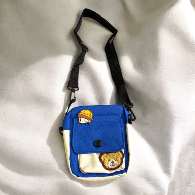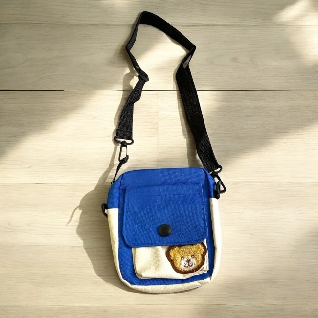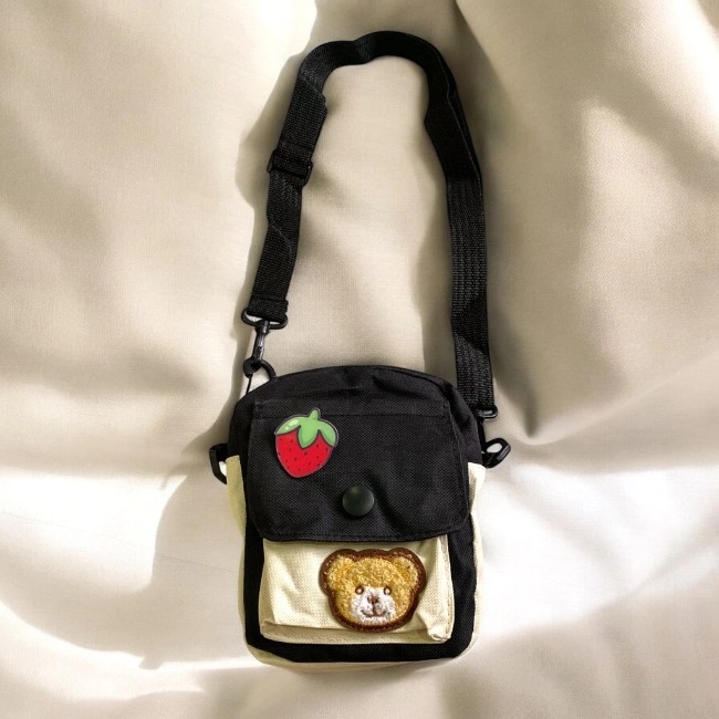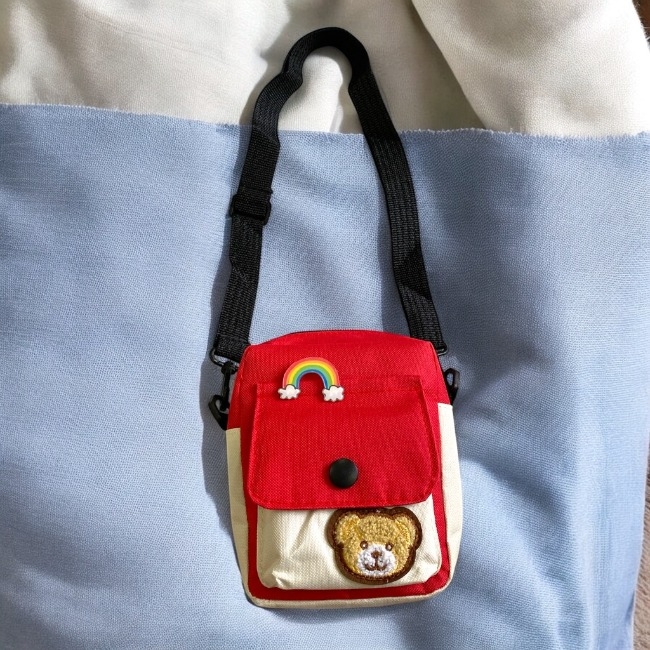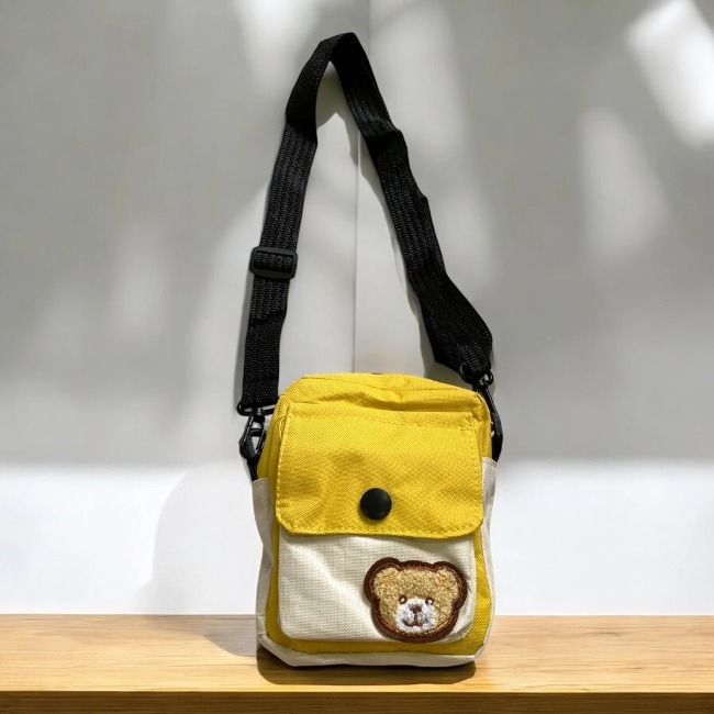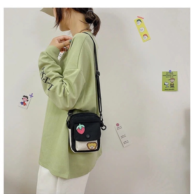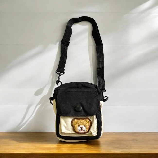Túi vải canvas đeo chéo họa tiết gấu 12,5*16,5*4,5cm