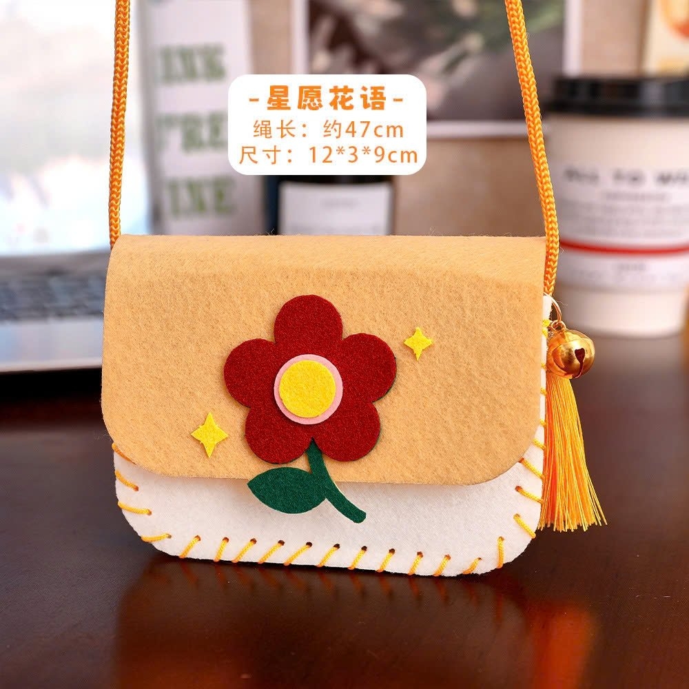 Túi vải đeo chéo họa tiết dễ thương kèm móc chuông tua rua