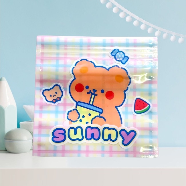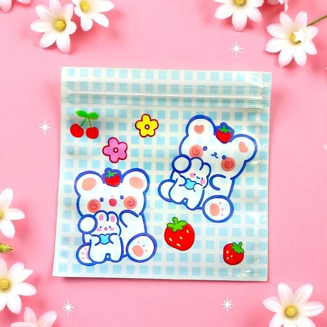 Sét 5 cái túi zip hoạt hình gấu thỏ kẻ caro dễ thương 13.5x13.5cm