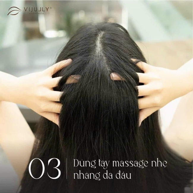 - Dùng tay massage nhẹ da đầu 1-2p cho tinh dầu thẩm thấu